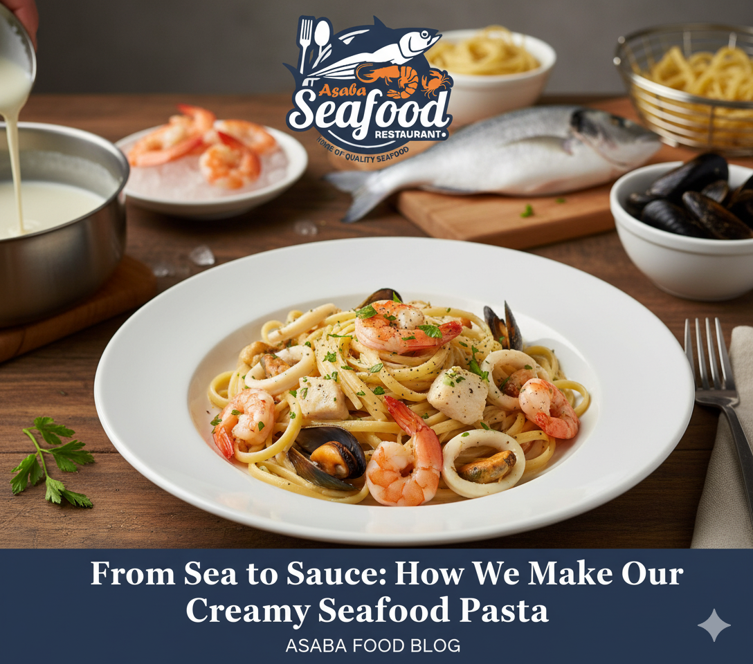 From Sea to Sauce: How We Make Our Creamy Seafood Pasta If there’s one dish that truly captures the heart of Asaba Seafood, it’s our Creamy Seafood Pasta — a perfect