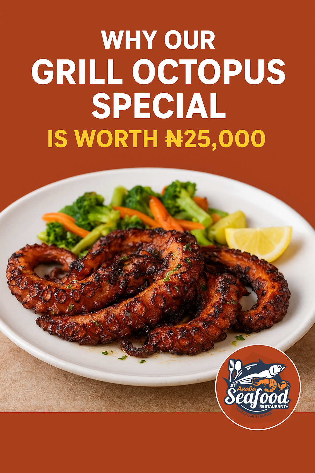 Why Our Grill Octopus Special Is Worth ₦25,000 — and Why You’ll Love It Fresh, Flavorful, and Absolutely Worth Every Naira When you scan our menu and see the Grill